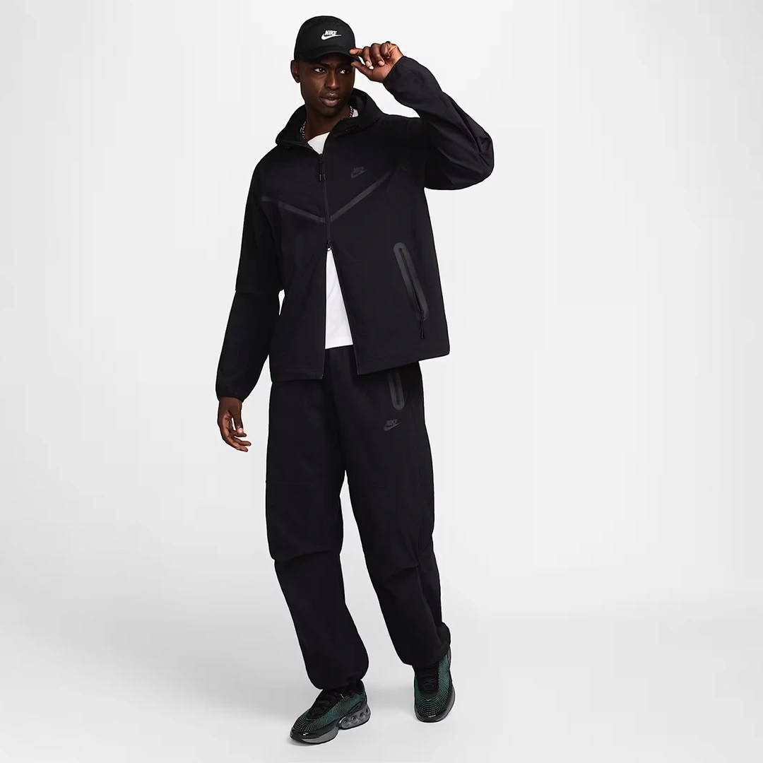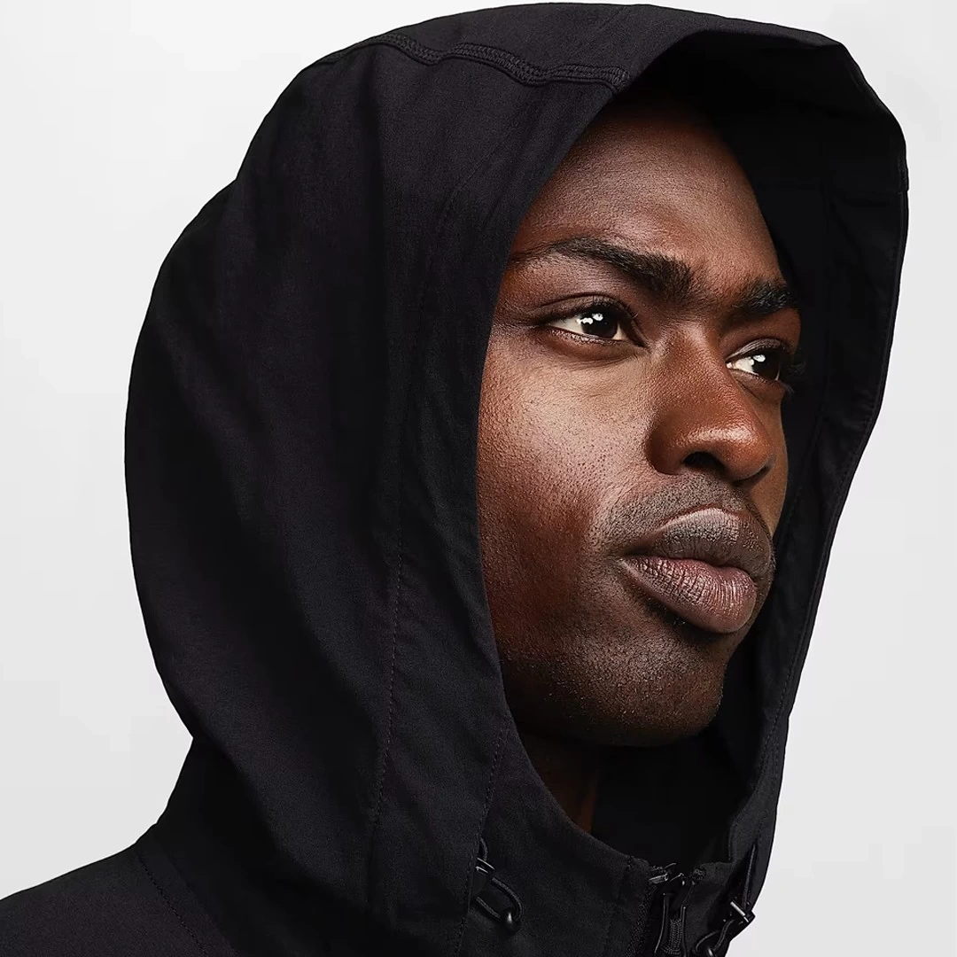 Tech Fleece öncüllerinden yola çıkılarak tasarlanan Nike Tech Woven Ceket, eklemli dirsekler, çift yönlü ön fermuar ve etek ucu ile kapüşonda ayarlanabilir düğmelerle modern ve teknik bir uyum sunuyor.